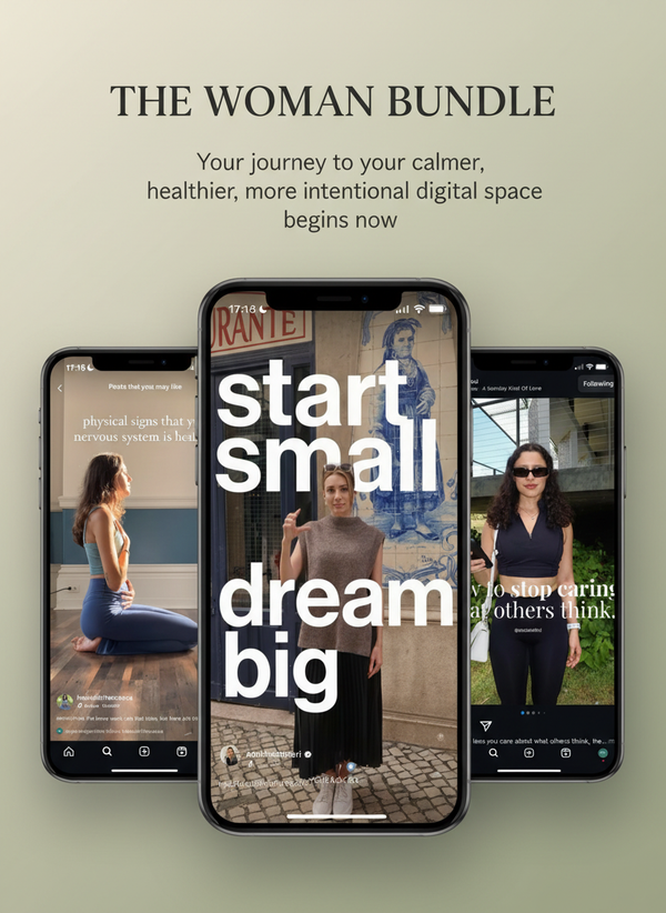 Your feed should nourish you, not drain you. The Woman Bundle turns your scroll into a wellness ritual.